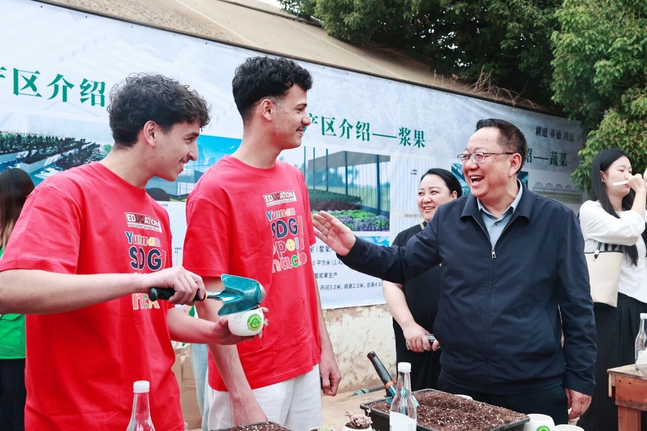 活动现场,文俊书记亲切与外国学生交流,细致询问大家在华学习生活情况、对云南的印象与感受,并积极宣传留学中国、学在云南的国际教育政策,鼓励各国青年以技能为桥、以文化为媒,增进理解、深化友谊。盛冀萍副校长陪同参观校园与实训基地,向来访师生介绍学校农业职业教育特色与国际合作成果。